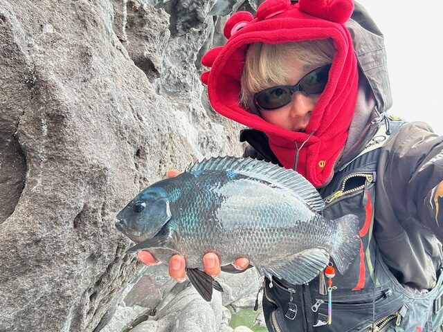 そして冬の渋い口太を狙いつつも、尾長も混じってくるまさに今回のような場合にはずせないのががまかつのアジャストグレです。